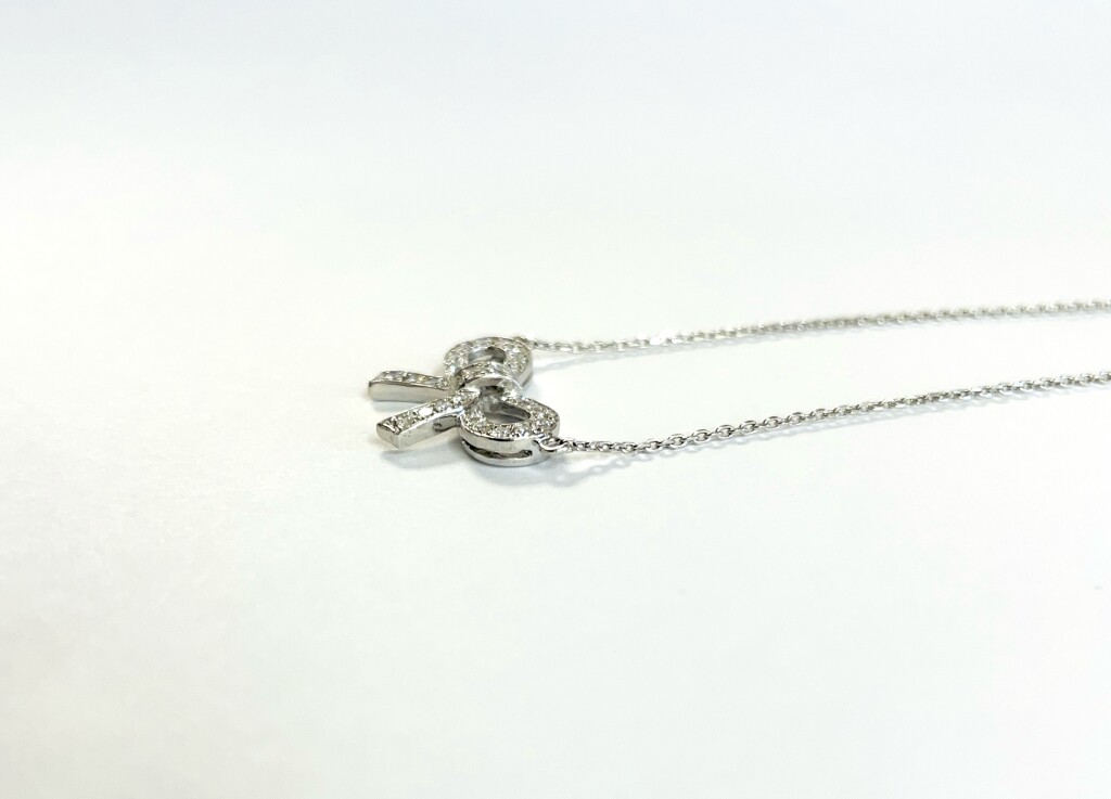K18WGのダイヤモンド入りリボンネックレスです。
