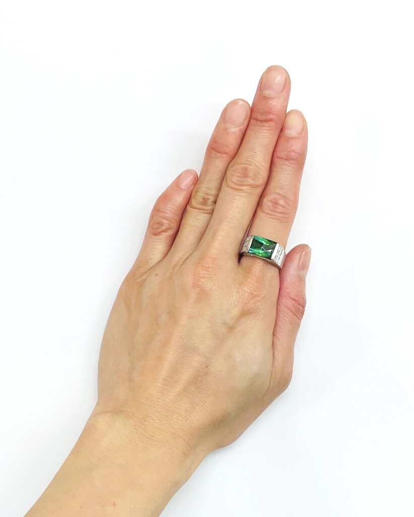 プラチナのグリーントルマリンリングです。