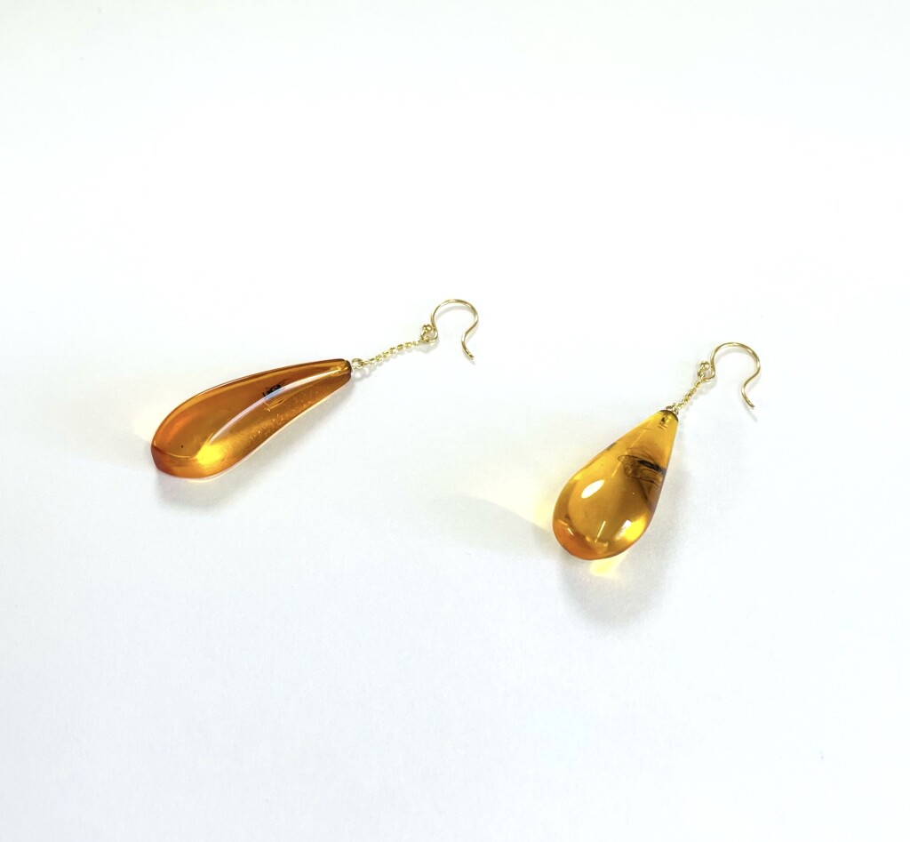 18金の琥珀ピアスです。