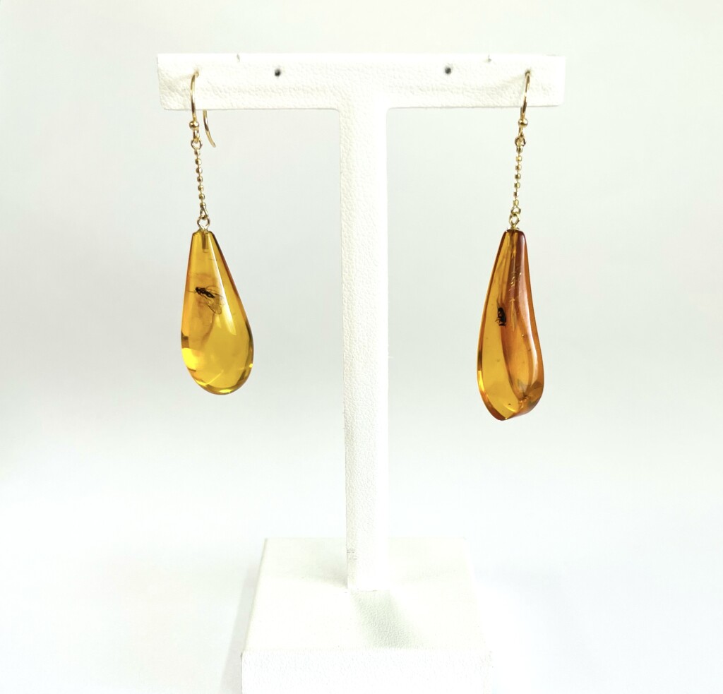 K18 虫入り琥珀のつり針ピアス